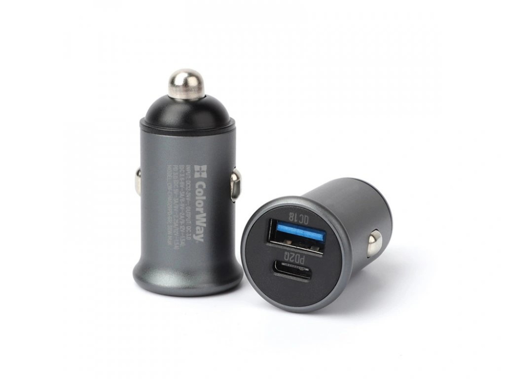 - ColorWay nabíjačka do Auta CW 2USB ( 1xType-C PD + 1x USB QC 3.0 ) 38W - šedá (CW-CHA029PD-GR)