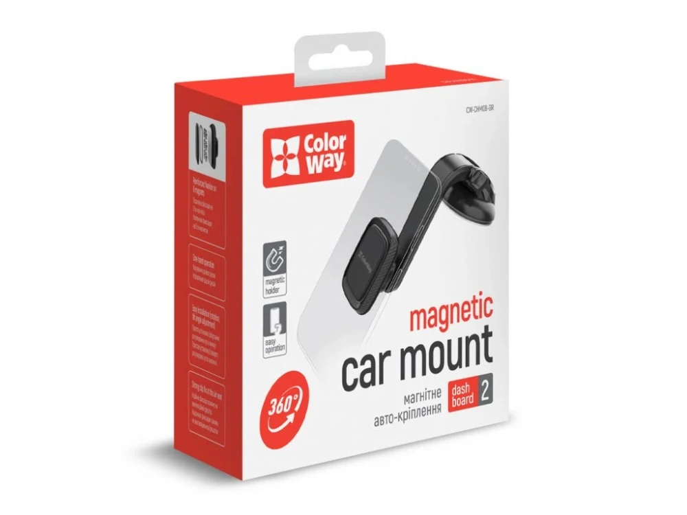 - Magnetický držiak do auta ColorWay Dashboard-2 - 360 ° rotácia | Sivý