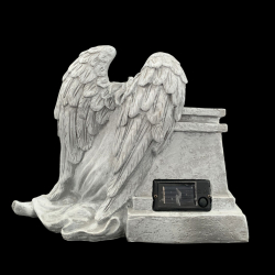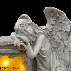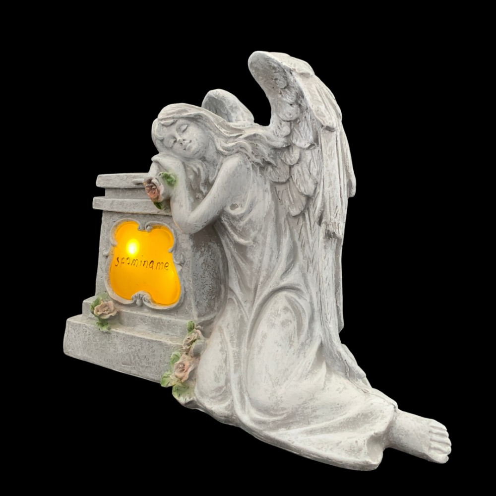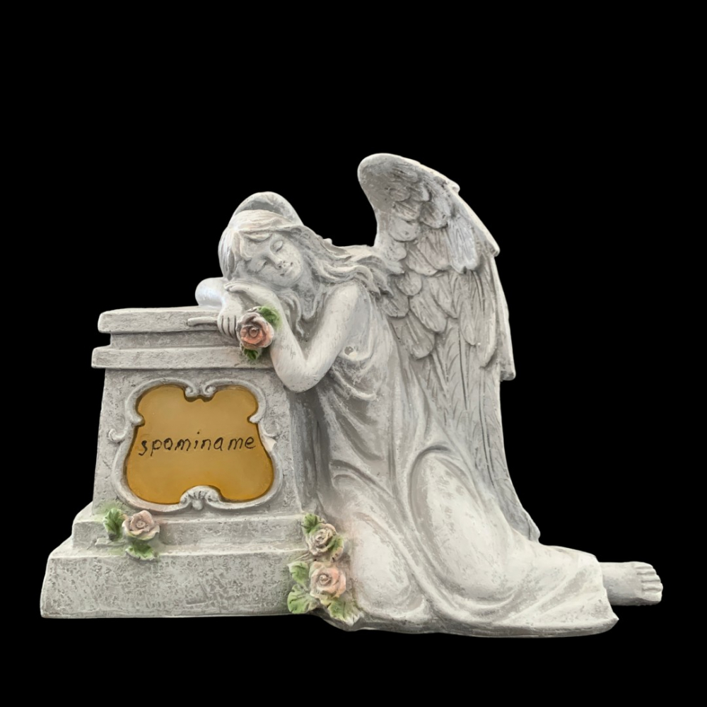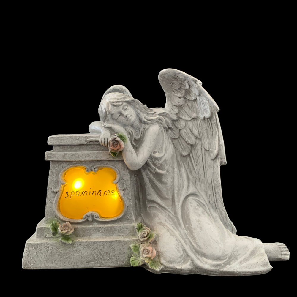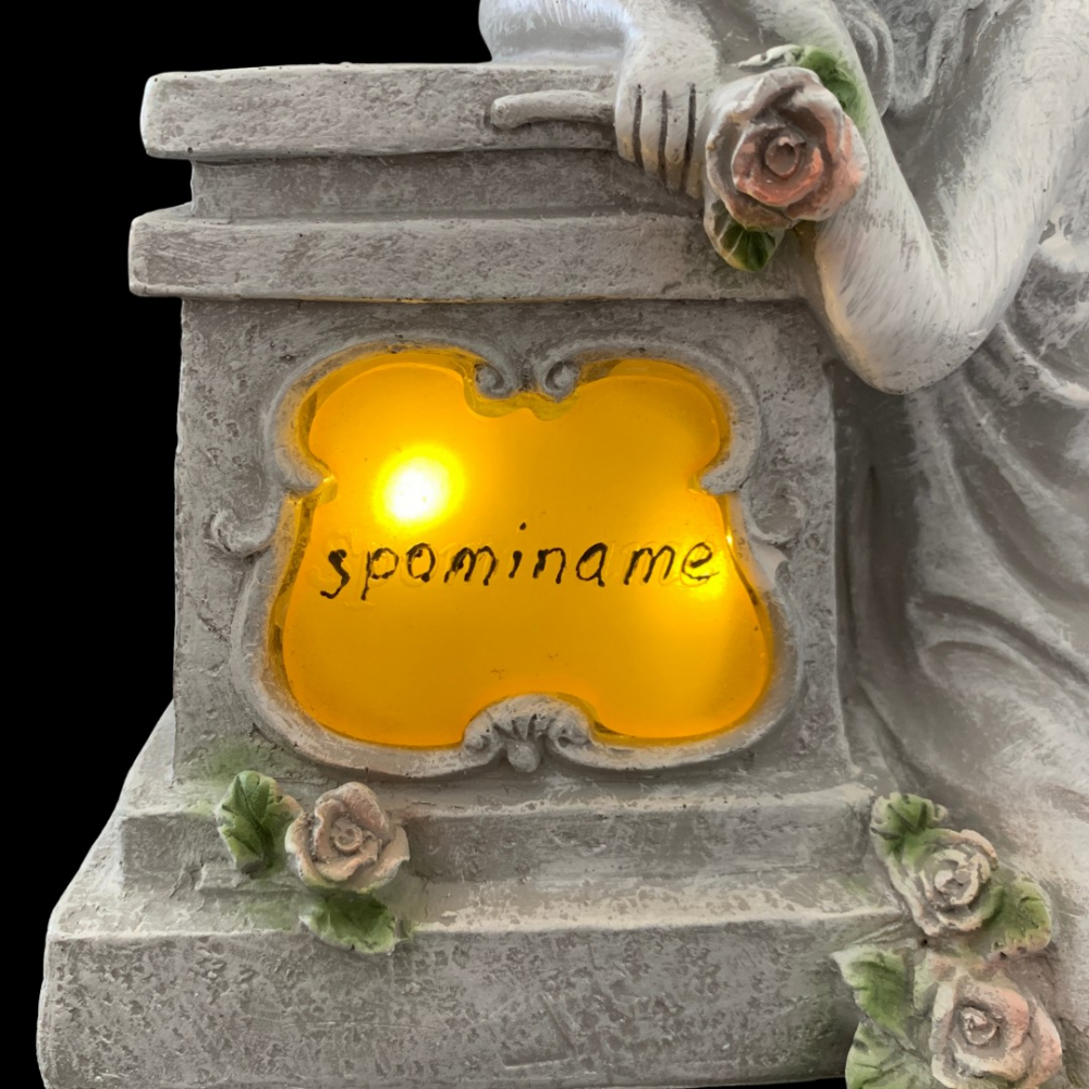 Náhrobná dekorácia anjel polosediaci solárny s nápisom spomíname