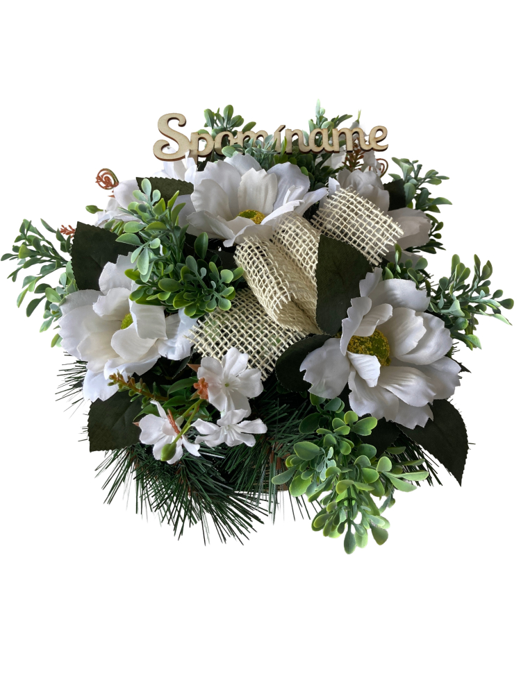 Náhrobná ikebana biela anemonka s nápisom Spomíname
