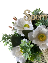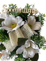 - Náhrobná ikebana biela anemonka s nápisom Spomíname