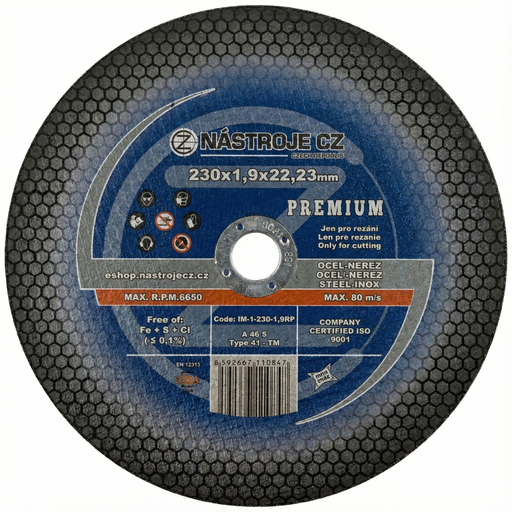 NÁSTROJE CZ – rezný kotúč na oceľ a nerez 230 × 1,9 × 22,23 PREMIUM