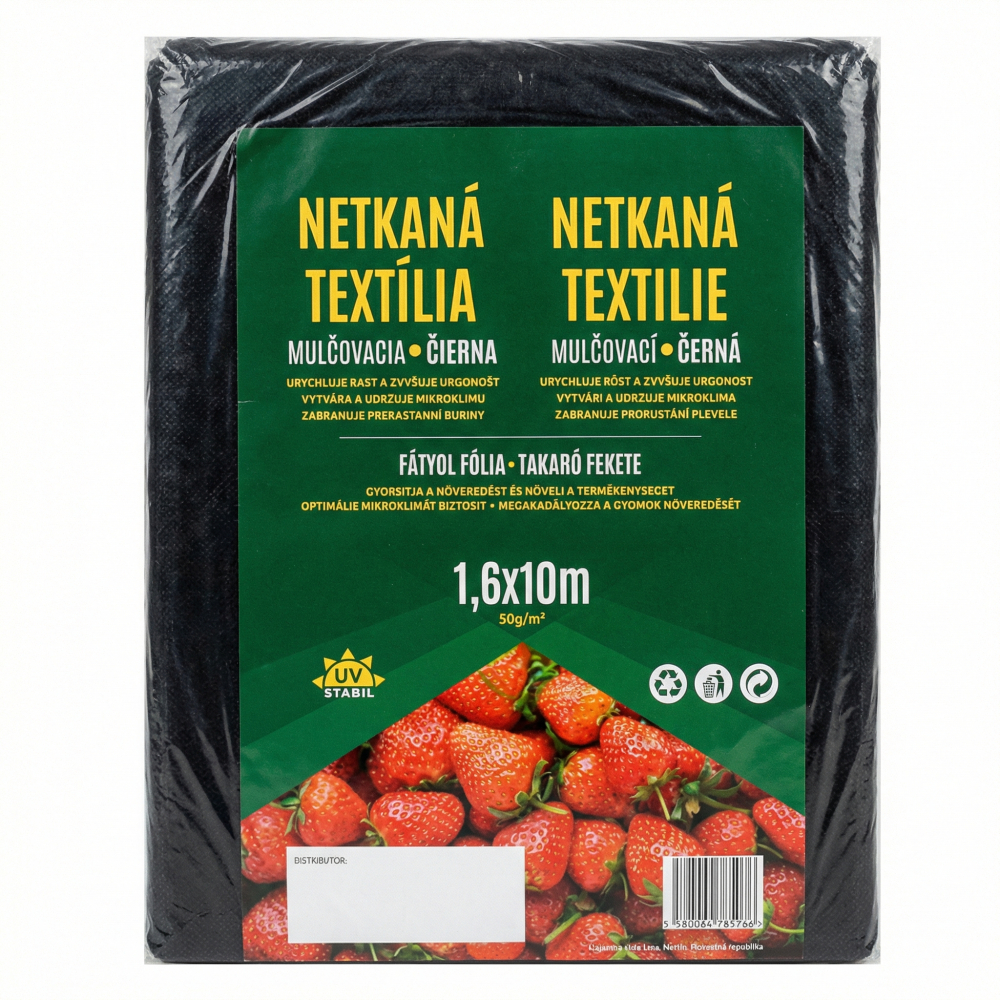 Netkaná textília čierna 1,6 × 10 m (50 g/m²) je účinná mulčovacia textília určená na ochranu pôdy pred burinou a nadmerným vysychaním. Funguje ako svetelná bariéra – obmedzuje prístup svetla k burinám, čím brzdí ich rast bez potreby chemických postrekov.